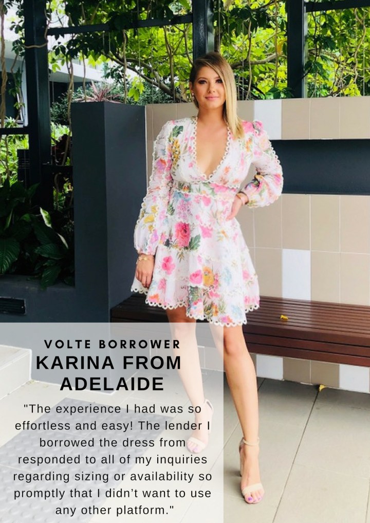 I was looking for a specific Zimmermann dress for my friend’s engagement party and found I could access it through The Volte. After discovering how easy it was to chat to the owner of the outfit, the whole process just really appealed to me so I signed up!