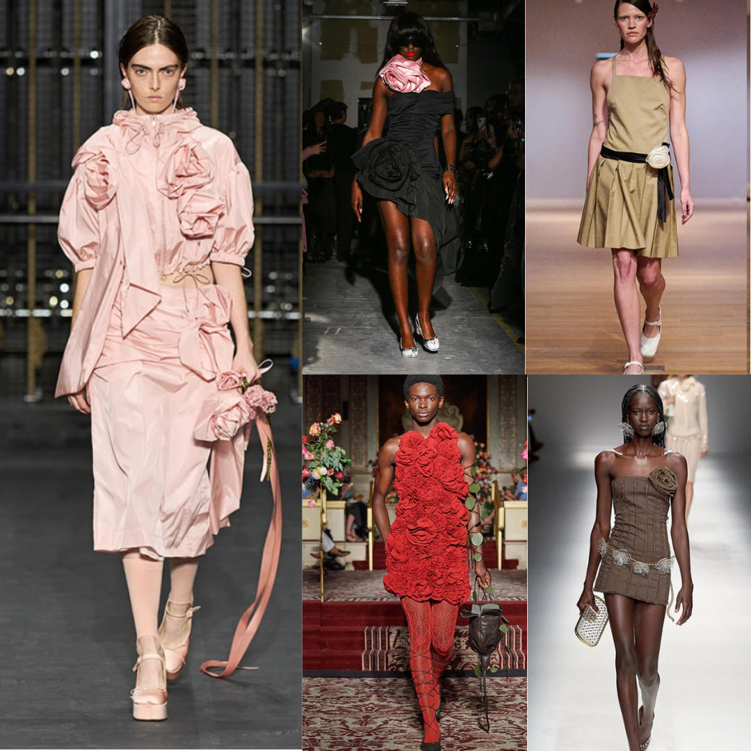 Roses and rosettes, delicate symbols of timeless romance, have blossomed into a captivating trend. Whether intricately embroidered on gowns, adorning accessories, or artfully woven into fabric, these floral embellishments evoke a sense of poetic beauty and femininity. Designers such as Simone Rocha embraced the artistry of roses best, using them to create garments that are not only visually stunning but also carry a whisper of enchantment. From three-dimensional rosettes that add depth to an outfit to the classic elegance of rose-patterned lace, this trend transcends seasons, bringing a touch of floral splendour to runways and wardrobes alike. As we immerse ourselves in this garden of style, roses and rosettes remind us that fashion is not just about what we wear but an expression of the timeless and the beautiful.